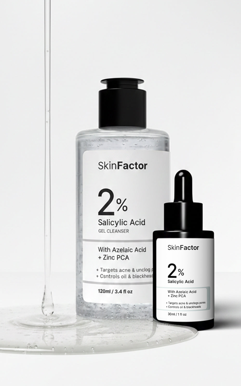 Salicylic Acid Anti Acne Duo – Featuring Salicylic Acid 2% Cleanser and Salicylic Acid 2% Serum, this powerful pair works to deeply cleanse pores, reduce breakouts, and control excess oil. Enriched with Zinc PCA, it helps regulate sebum, soothe irritation, and promote visibly clearer, balanced skin.