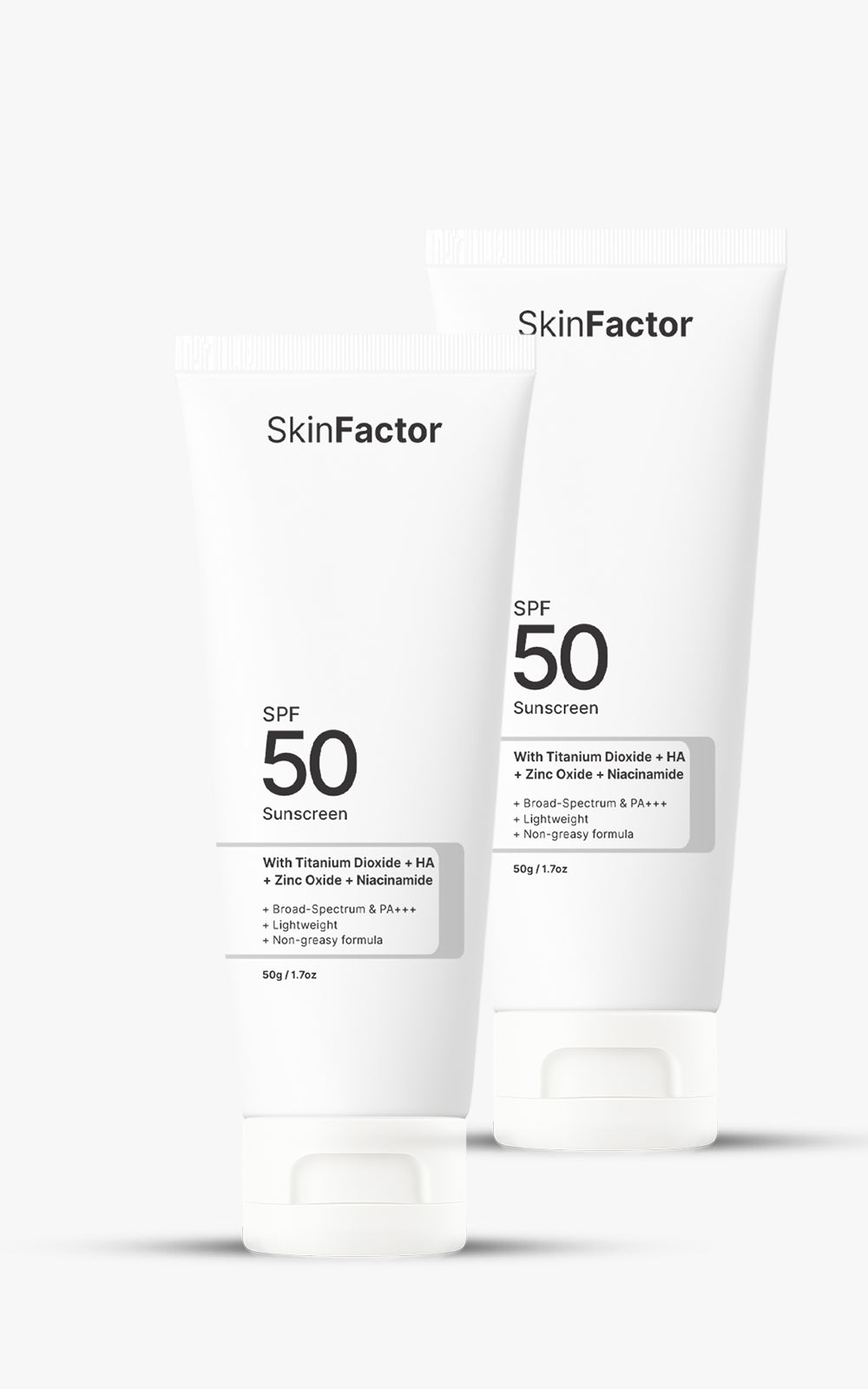 SPF 50 Sunscreen (Lightweight, PA+++) – A daily broad-spectrum sunscreen enriched with Hyaluronic Acid, Vitamin E, Zinc Oxide, and Titanium Dioxide. It offers strong UVA/UVB protection, hydrates the skin, and shields against sun damage — all in an ultra-light, non-greasy finish.