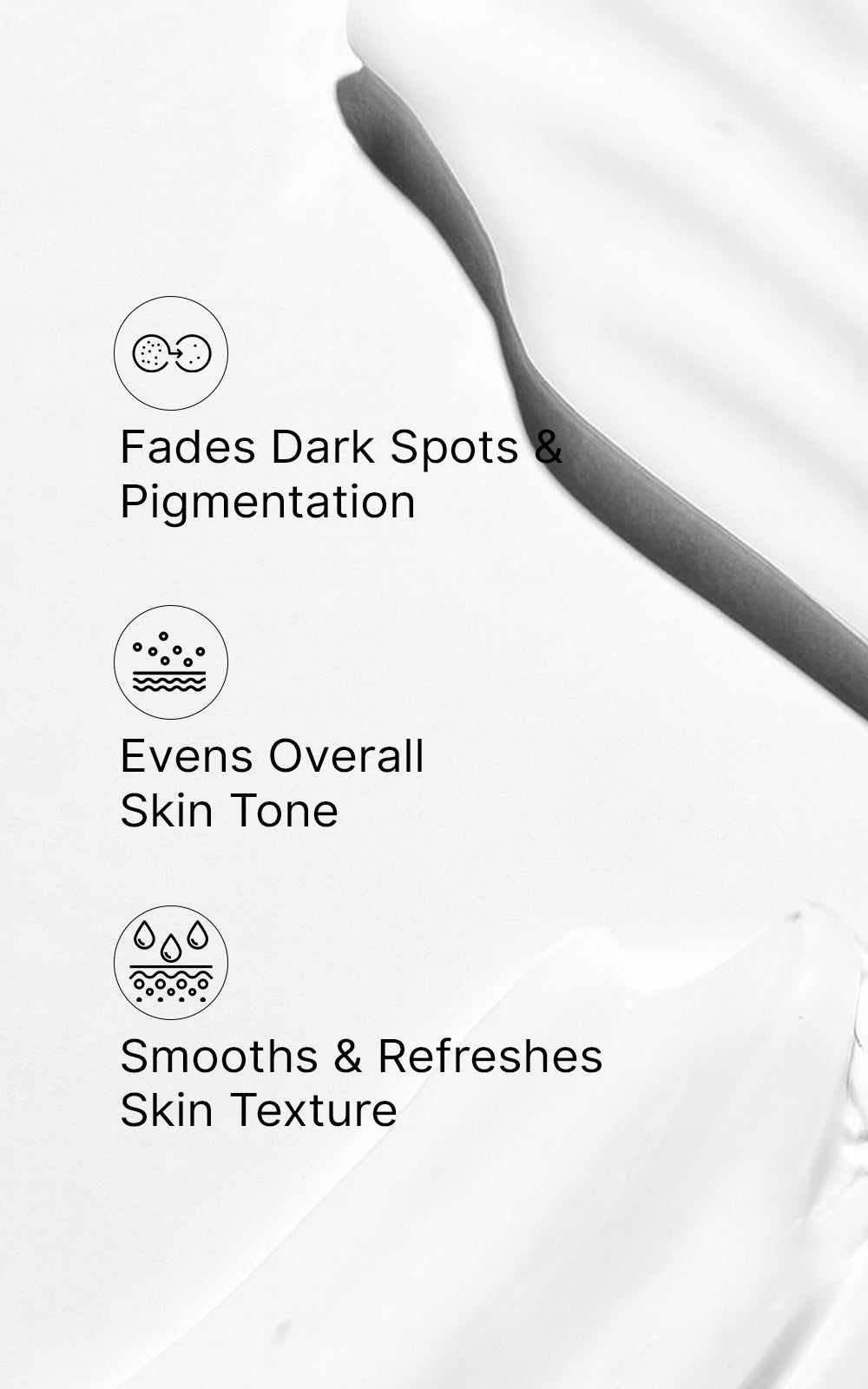 Alpha Arbutin: Fades dark spots, sun damage & acne marks.