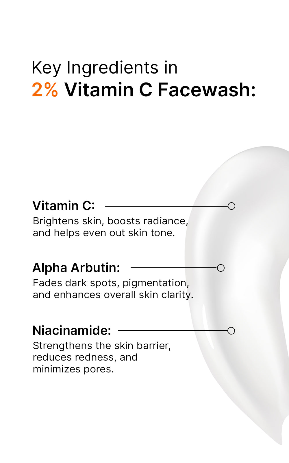 Vitamin C 2% Face Wash – Enriched with Vitamin C, Niacinamide, and Alpha Arbutin, this gentle cleanser lifts away impurities while visibly brightening and evening skin tone. It refreshes tired, dull skin, leaving your complexion radiant, smooth, and glowing after every wash.