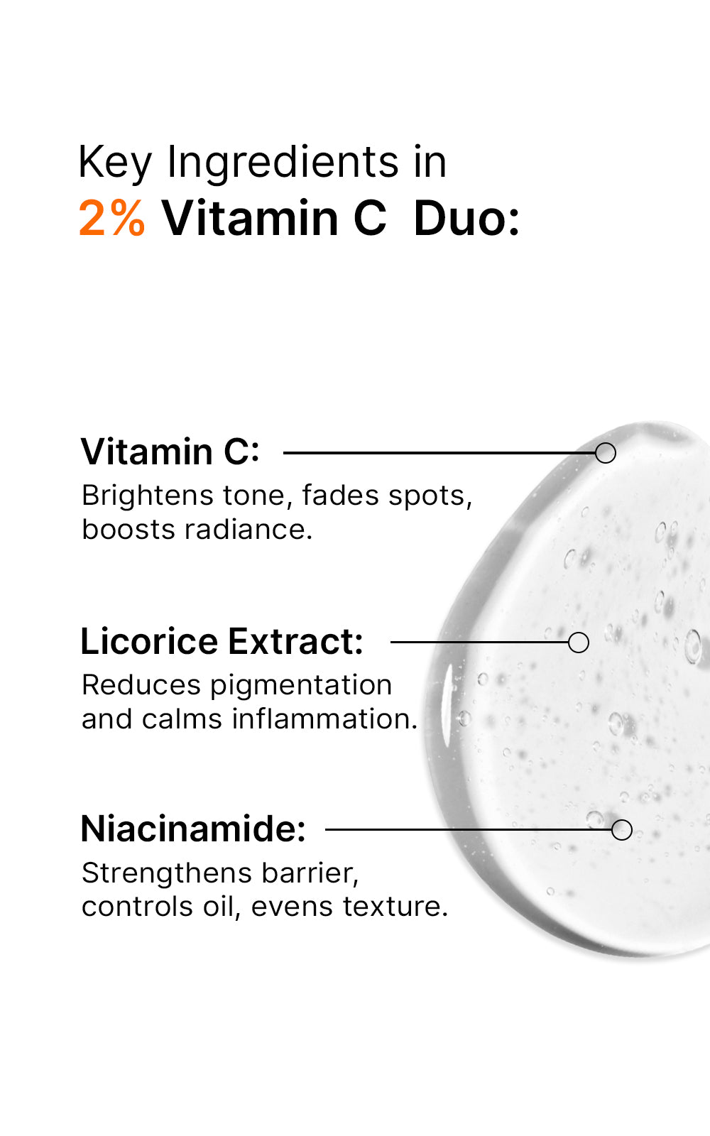 Vitamin C Brightening Duo – A daily routine with Vitamin C 2% Face Wash and Vitamin C 10% Serum, enriched with Licorice Extract and Niacinamide. Together, they cleanse, brighten dull skin, fade dark spots, and even out skin tone—revealing a radiant, smooth, and healthy-looking complexion.