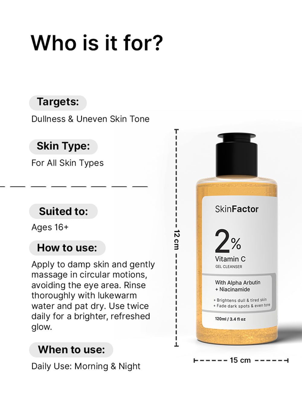 Use Vitamin C 2% Face Wash twice daily — morning and evening.